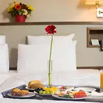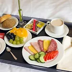 Förutom en generös och underbar frukost erbjuds här en utmärkt service. Rummen är stora och har balkong, bekväma sängar och alla bekvämligheter, maten är mycket god...